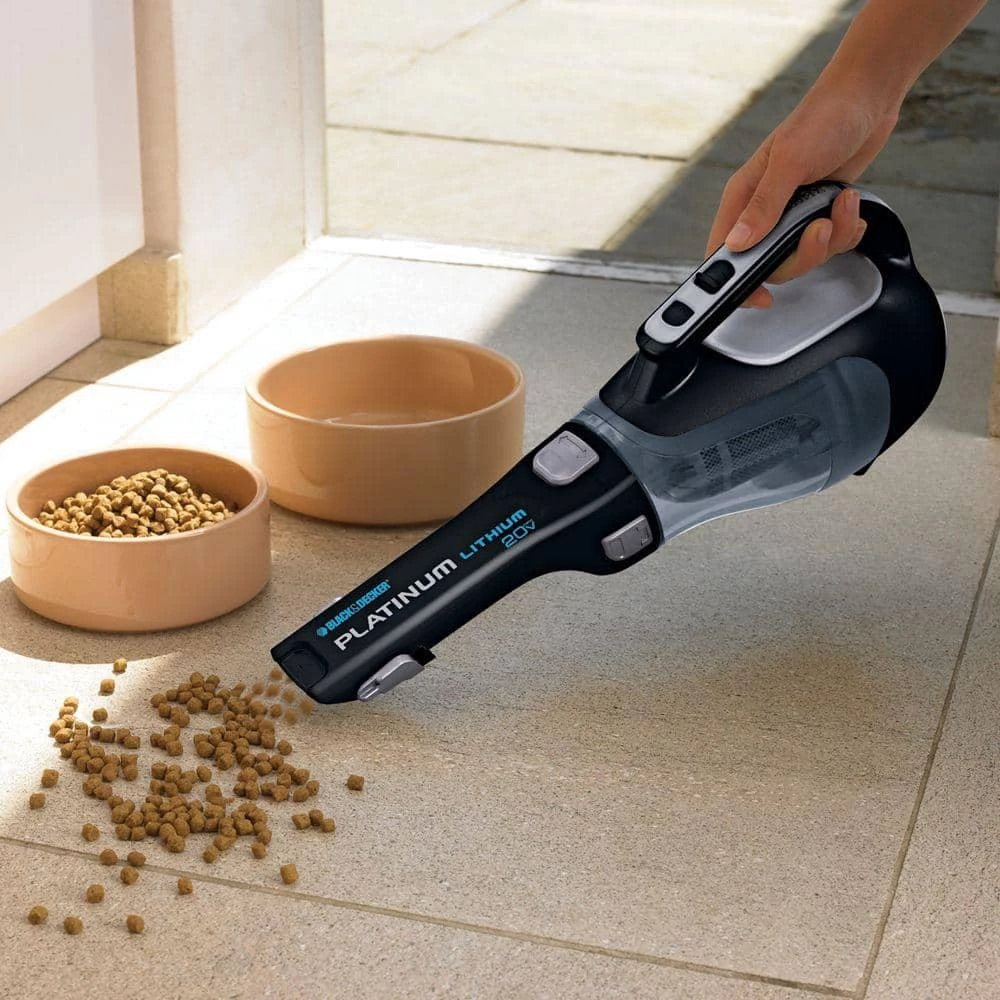 The sleek 20-Volt maximum Lithium Hand Vac features a rotating slim nozzle with a built-in crevice tool and flip-up brush and is ideal for everyday clean up of dust, pet hair and crumbs. The triple layer, cyclonic action filtration system helps keep dirt off the filter so users can handle large messes with long-lasting suction power. Backed by a BLACK & DECKER 2 Year Limited Warranty for added peace of mind.