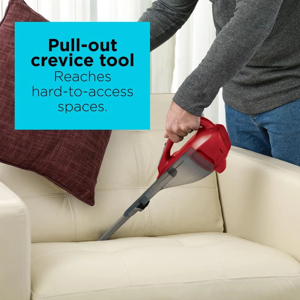 Clean small messes quickly with this dust buster hand vacuum. Empty the dustbin without touching the dirt. On-board accessories add versatility. The crevice tool helps with hard-to-reach spots, and a flip-up brush lets you dust and clean upholstery. Store it in a handy spot with the included wall mount.