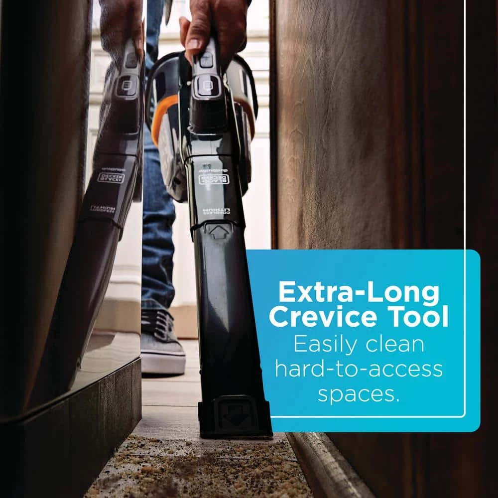 Eliminate dirt that’s out of reach, but not out of sight. Extend your reach with our longest built-in crevice tool. The versatile 16-Volt dustbuster advanced clean and cordless hand vacuum cleans hard to reach areas with less effort. Powerboost with the touch of a button to tackle any mess. Features an XL 750 ml dust bin and a battery indicator to keep you moving. Keep your hands clean with the 1-touch easy empty dust bin.