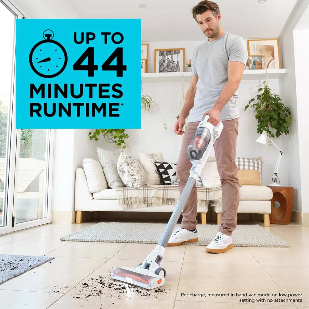 - Access confined spaces under couches and beds with front-facing dustbin which allows stick vacuum to lie flat while cleaning