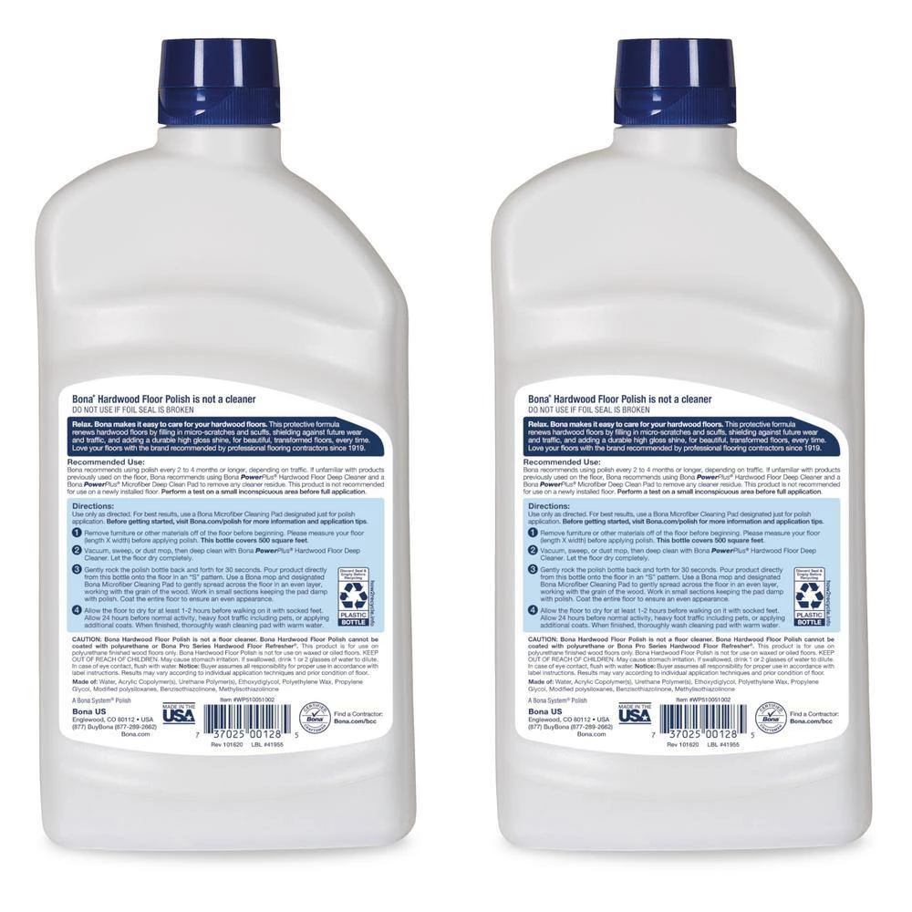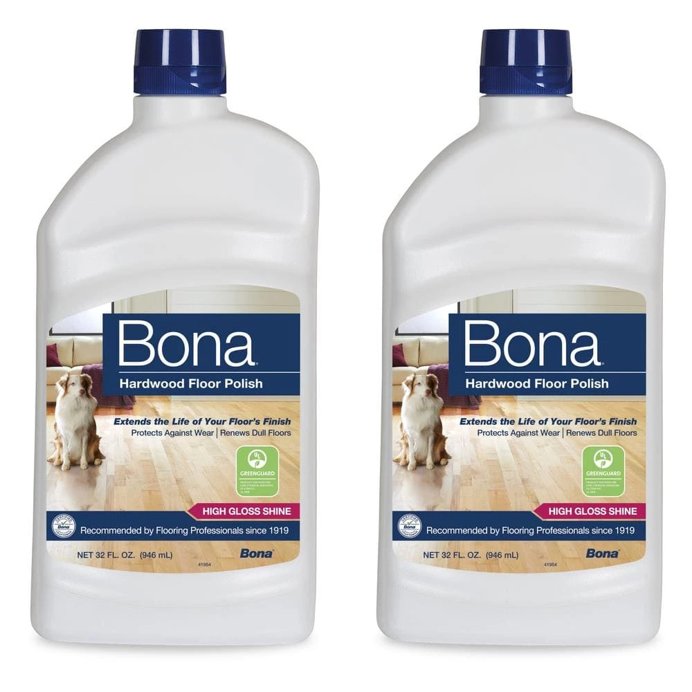 Make your life easier with this convenient 2-pack bundle of Bona Hardwood Floor Polish High Gloss. This Polish renews hardwood floors by filling in micro-scratches and scuffs, shielding against future wear and traffic, while adding a high gloss shine, for beautiful, transformed floors, every time. The durable, urethane acrylic blend adds a protective layer, evening out the appearance of your floor for a refreshed new look. Use every 1-months to 4-months to keep floors revitalized and looking their best. Covers about 500 sq. ft.
