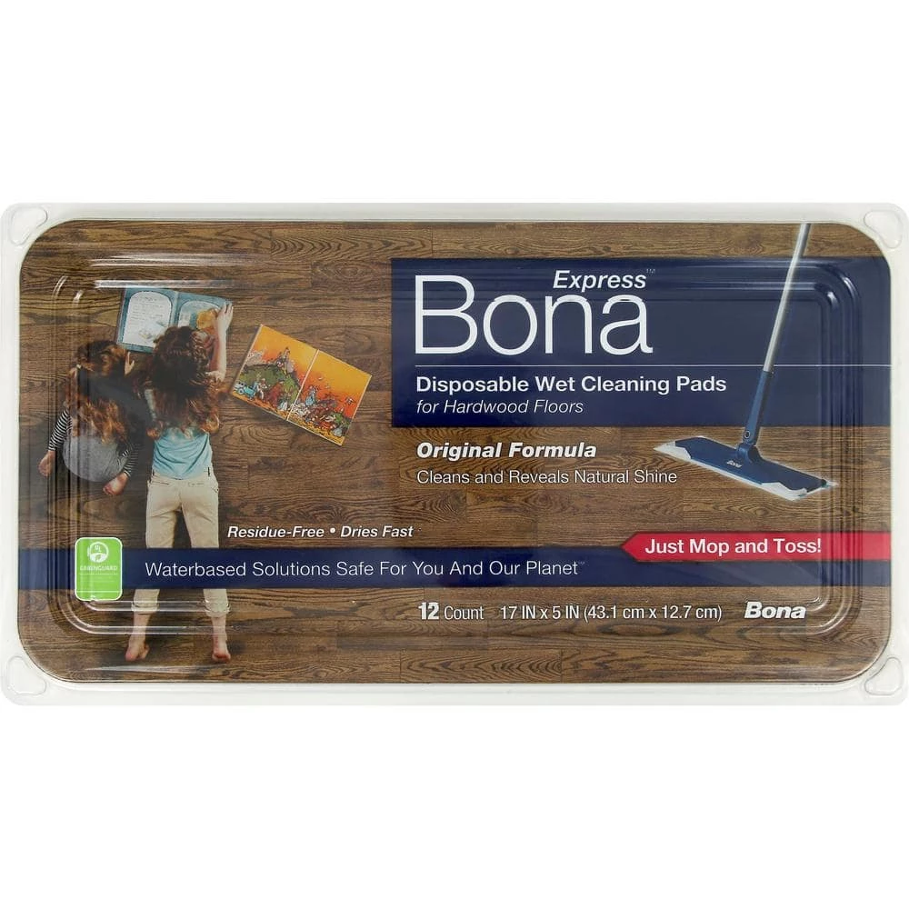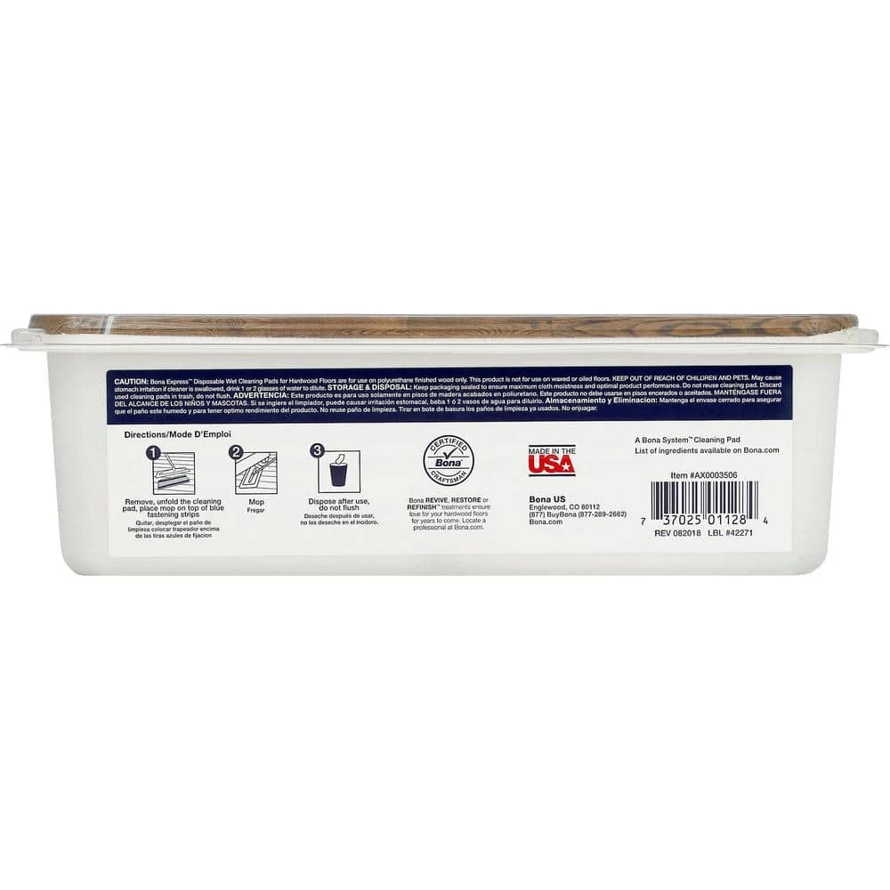 For a thorough clean quickly, Bona Disposable Wet Cleaning Pads feature a multi-layered design infused with Bona Hardwood Floor Cleaner. The residue-free, fast drying solution cleans hardwood floors by gently and effectively removing dust, dirt and grime to reveal the floor’s natural shine and beauty. These extra-large cleaning pads utilize locking strips for easy attachment and removal from the mop for superior quick and easy cleaning. Waterbased solutions and GREENGUARD GOLD certification ensure a safe product for your family, pets and our planet.