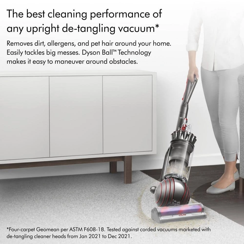 The Dyson Ball Animal 3 tackles tough tasks easily, making it ideal for pet owners and parents. New de-tangling technology automatically clears wrapped hair from the brush bar as it cleans. With Ballâ„¢ technology and 3 cleaning modes, the Dyson Ball Animal 3 smoothly navigates around furniture and obstacles with a simple turn of the wrist, for precise cleaning. With no loss of suction, 2 Dyson-engineered accessories, and up to a total of 50ft reach, the vacuum gets up high, down low and everywhere in between for a whole-home deep clean. Comes with a 5-year warranty and lifetime Dyson support.