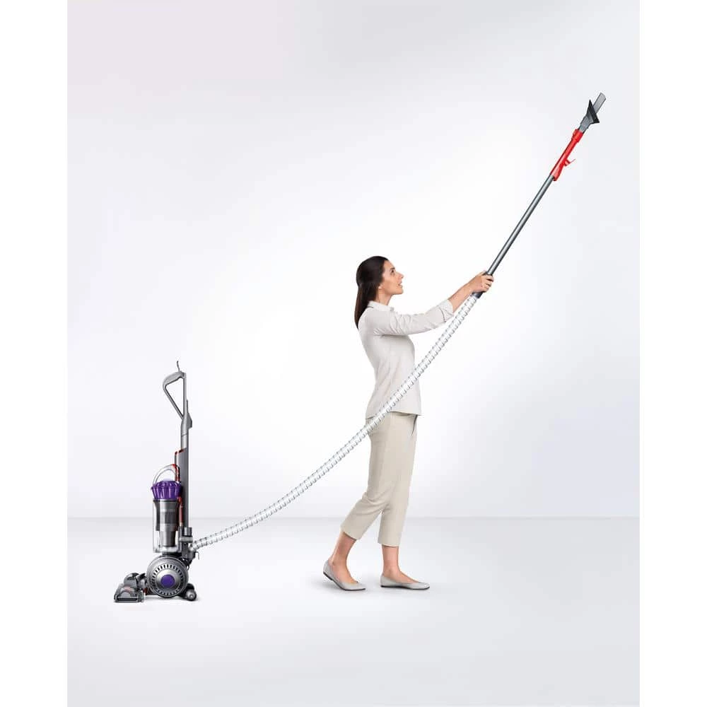 The Dyson Slim Ball Animal upright vacuum cleaner is engineered to remove dirt and microscopic dust on all floors, for tough tasks. The advanced self-adjusting cleaner head automatically adjusts between all floor types, including carpet, hard wood, laminate, and tile floors – sealing in suction for a powerful clean across your entire home. Its wand and hose release in one smooth action to make it easier to clean up high and under furniture. Whole-machine filtration, ensures that allergens and bacteria are trapped inside the machine, not expelled back into the home for a cleaner environment. The Dyson Slim Ball Animal vacuum cleaner comes with extra tools including the tangle-free turbine tool, which removes hair from carpets and upholstery without tangling. Dyson’s free 5-year warranty covers parts and labor, plus free shipping there and back.