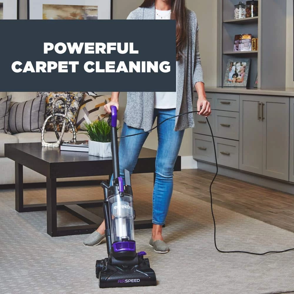 The Eureka Airspeed compact bagless upright vacuum cleaner is the powerful, lightweight cleaning solution you’ve been waiting for. Lightweight at only 7.7lbs yet incredibly powerful to deep clean carpets and hard floor. The 1.7L easy empty dust cup makes uninterrupted cleaning a breeze. This vacuum is packed with features including a detachable handle which connects to the hose & tools for above floor cleaning, includes a crevice tool and dusting brush that can be stored on board for easy access.