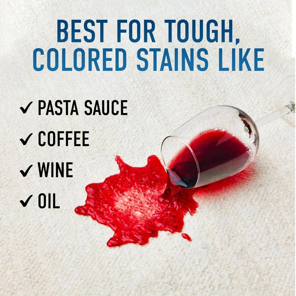- FAST-ACTING FORMULA: Attacks and breaks down tough stains like ketchup, dirt, pasta sauce, coffee, grape juice and more