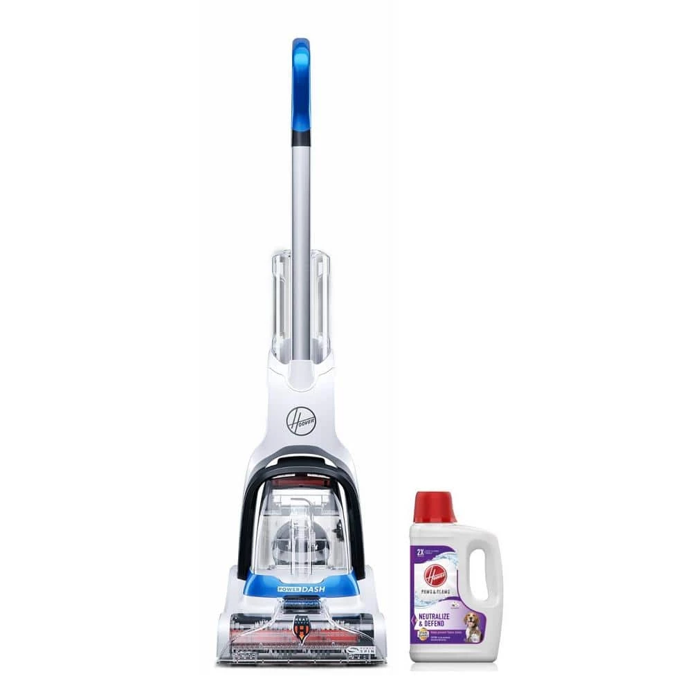 The Hoover PowerDash Pet Carpet Cleaner easily tackles pet messes and everyday stains while delivering 2x More Cleaning Power than the leading lightweight carpet cleaner. Our new PowerSpin Pet Brush Roll provides a powerful clean for high traffic areas and small spaces. This easy-to-use pet carpet cleaner delivers a compact and lightweight design for efficient cleaning and storage. Plus, the PowerDash is designed with HeatForce power, to deliver even faster drying for any space. Ideal for all your pet carpet cleaning needs. With the Hoover Paws and Claws Carpet Cleaning Formula with Stainguard Technology, makes it a breeze to clean up after your furry friends, even with repeat accident-makers. This advanced formula helps prevent future stains and it even continues to work after you have finished cleaning. It is formulated with enzymatic cleaning ingredients to neutralize odors and leave your home smelling fresh. Use this solution to clean carpets, area rugs, upholstery and car interiors.