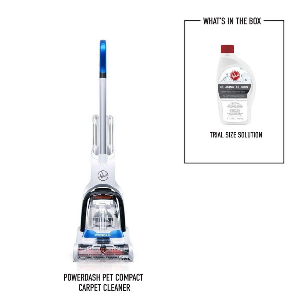 - WHAT’S INCLUDED: PowerDash Pet Compact Lightweight Carpet Cleaner, full size 64 oz. Paws & Claws Carpet Cleaning Solution, and sample bottle of Cleaning Solution