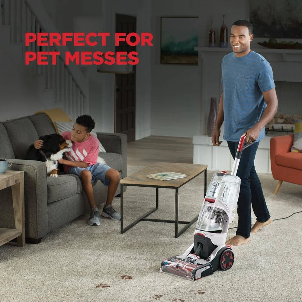 The Hoover Professional Series SmartWash Automatic Carpet Cleaner eliminates the guesswork with Automatic Cleaning Technology that makes carpet cleaning as easy as vacuuming. Simply push forward to clean, pull back to dry. No multiple buttons. No solution measuring. No hassle. Just seriously simple and seriously powerful. Remove deep down embedded dirt with FlexForce Power Brushes. Plus, Auto Mix precisely mixes and dispenses the correct amount of solution for optimal cleaning while Auto Dry powerfully extracts water with HeatForce for an even faster drying time.