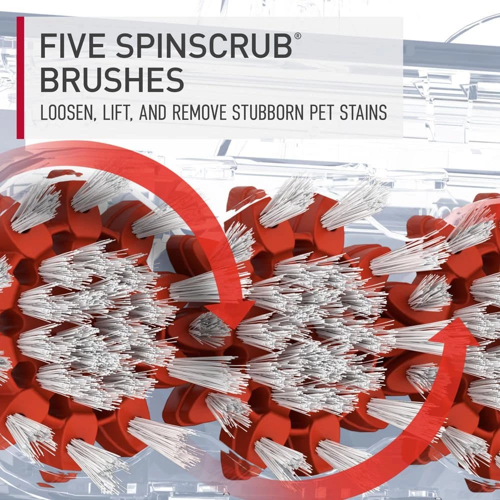 - 5-spin scrub brushes: deep, set-in stains don’t stand a chance against the 5-counter-rotating spin scrub brushes that scrub at multiple angles to loosen, lift, and remove even the toughest stains for a lasting clean