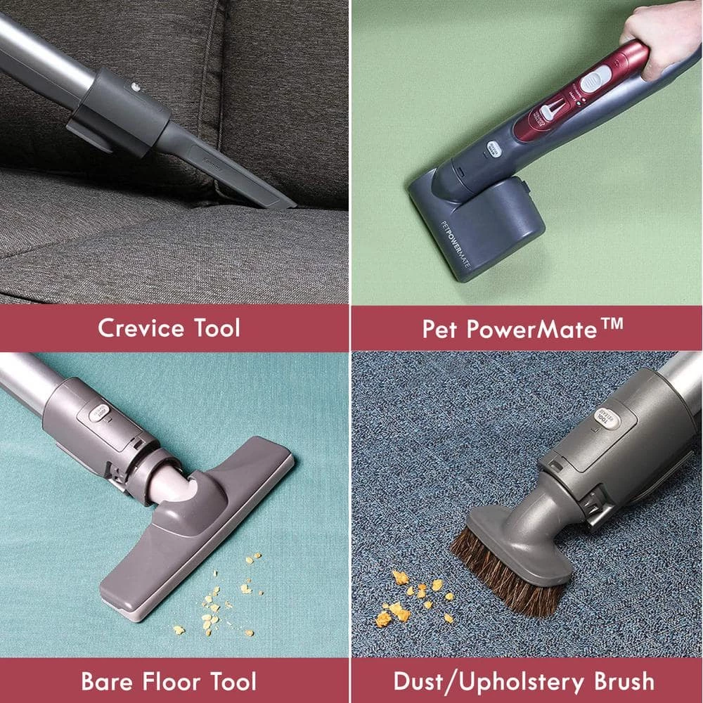 - Included Accessories: dusting brush, Pet Power Mate attachment, long crevice tool, and Pop-N-Go bare floor brush
