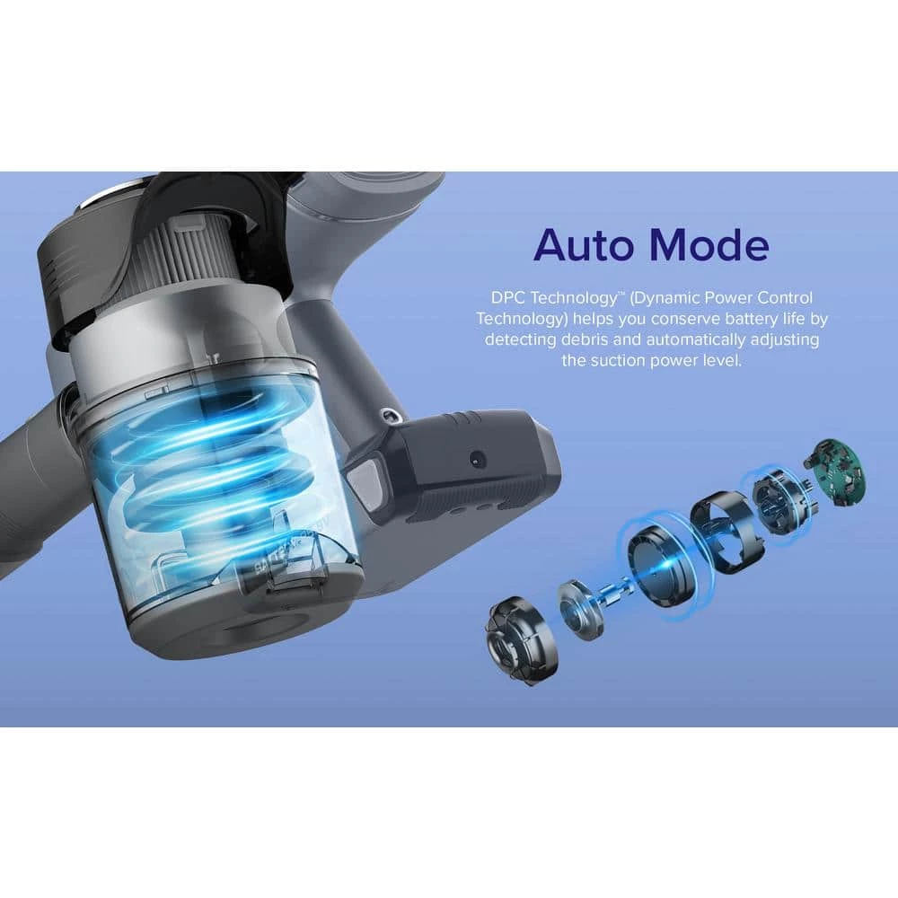 - Auto mode: DPC technology senses the level of debris travelling through the vacuum and automatically adjusts the suction power level