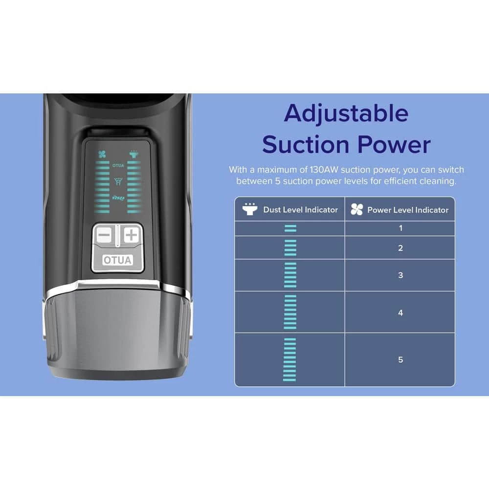 - 5 power levels: increase or decrease the suction power level for different kinds of messes