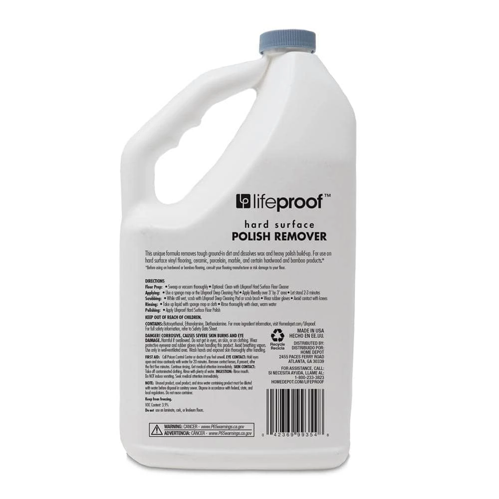Remove built-up wax and polish from your vinyl floors with Lifeproof Resilient Floor Stripper. The ready-to-use formula removes tough, ground-in dirt and stains. This product contains no phosphates and, the plastic container is recyclable (no. 2).