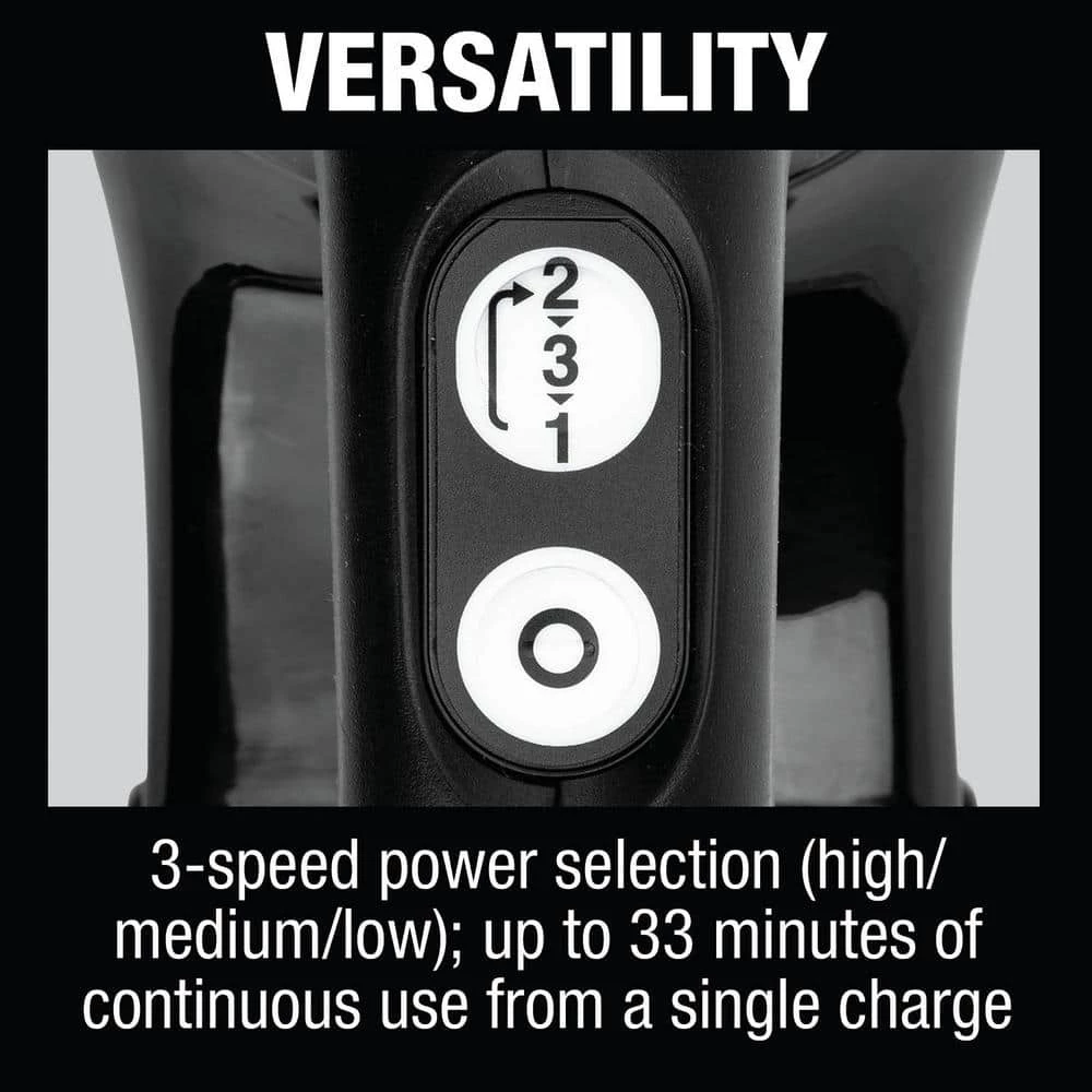- Push button 3-speed power selection (high/medium/low) for efficient operation
