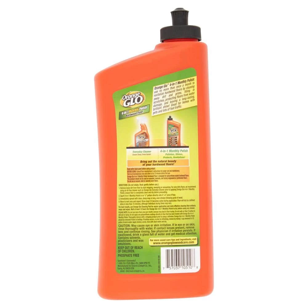 Orange GLO 24 oz. Fresh Orange 4-in-1 Hardwood Floor Cleaner and Polish cleans, shines, protects and revitalizes hardwood floors in 1 easy step and features a pleasing Fresh Orange scent. Clean away dirt and grime, fill in scratches, protect from water damage and leave a shine that lasts. Perfect for floors with heavy foot and pet traffic.