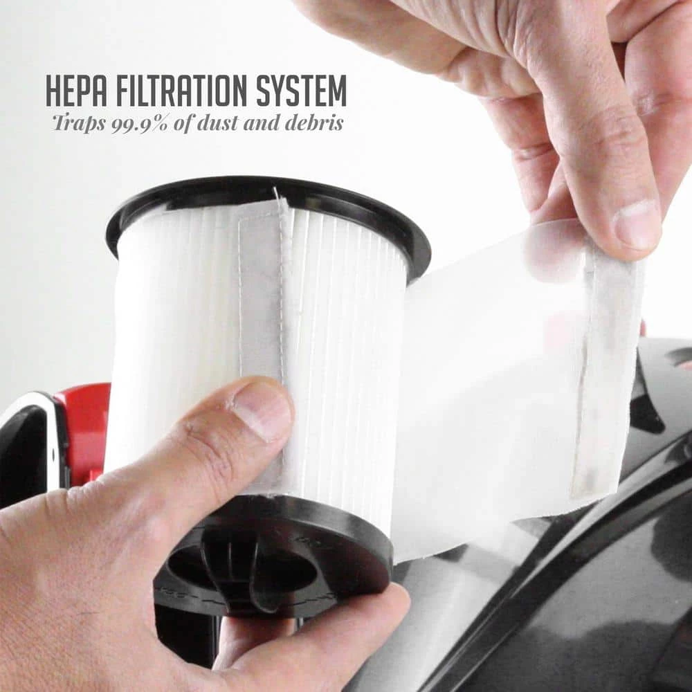 - Advanced Multi-level Filtration – Say goodbye to dirt! The high efficiency particulate air filtration system removes 99.9% of dust and debris such as hair, clothing fibers, bits of dead bugs, pollen, and etc. It can collect particles that are 300x smaller than a hair.