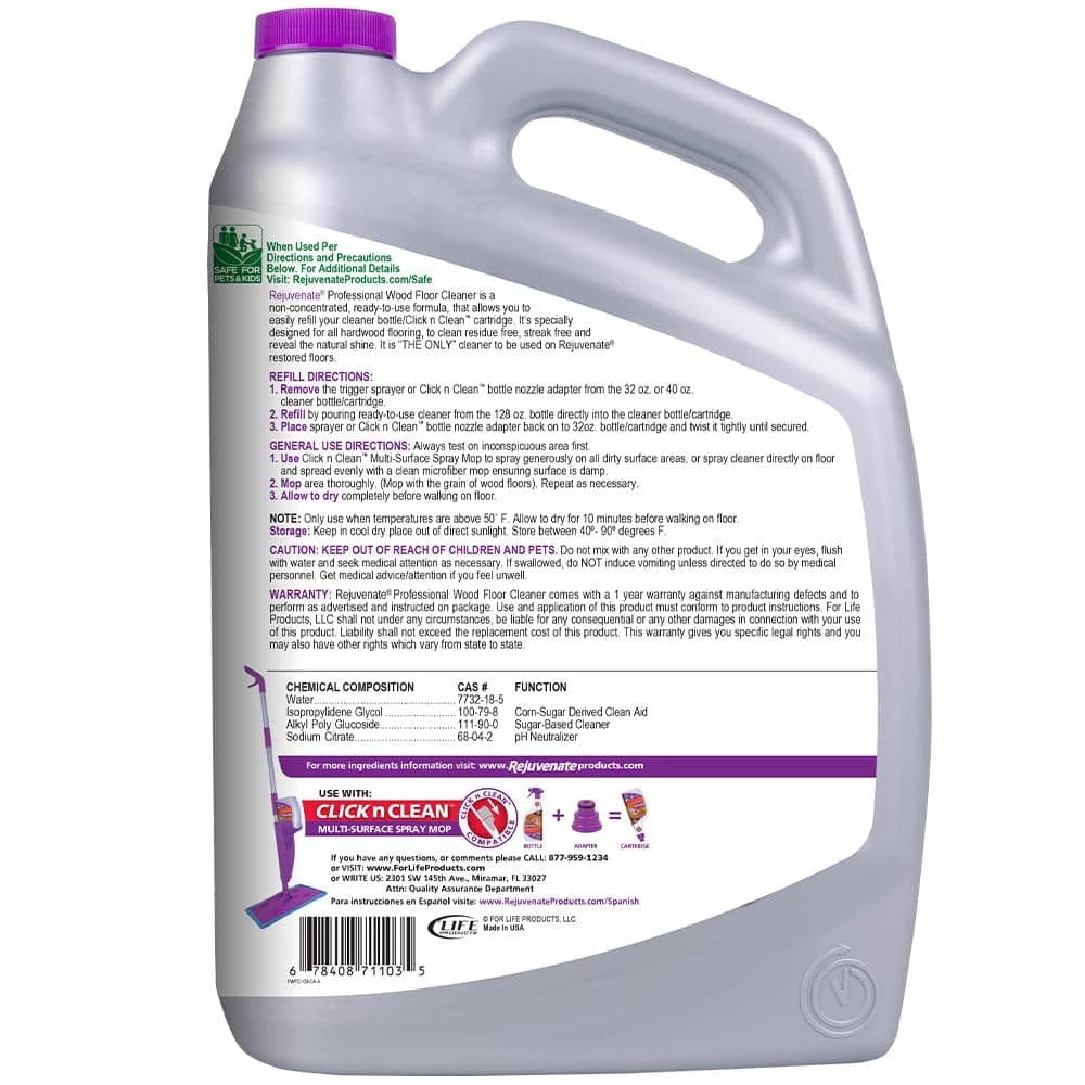 Rejuvenate Professional Hardwood Floor Cleaner has been specially designed for use on hardwood floors. This professional formula is naturally derived to help maximize cleaning power and minimize streaking. Its strong enough to eliminate the worst dust, dirt and debris, yet gentle enough to use as a daily cleaner. No mop bucket means its easy to clean in tough places and is the best way to effectively clean hardwood floors with little effort. To reveal the natural shine on hardwood floors, simply spray the professional hardwood floor cleaner in the desired location and mop with the grain. The natural surfactants eliminate dirt and debris while the added ionic discharging agents instantly dry the floor with no streaks, saving you time. From Rejuvenate Make It New Again.