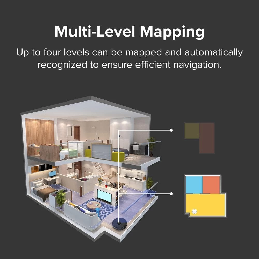 - Precision mapping: save up to 4-levels of maps, including individual rooms, no-go zones, no-nop zones, and invisible walls for total control of where and when your robot cleans