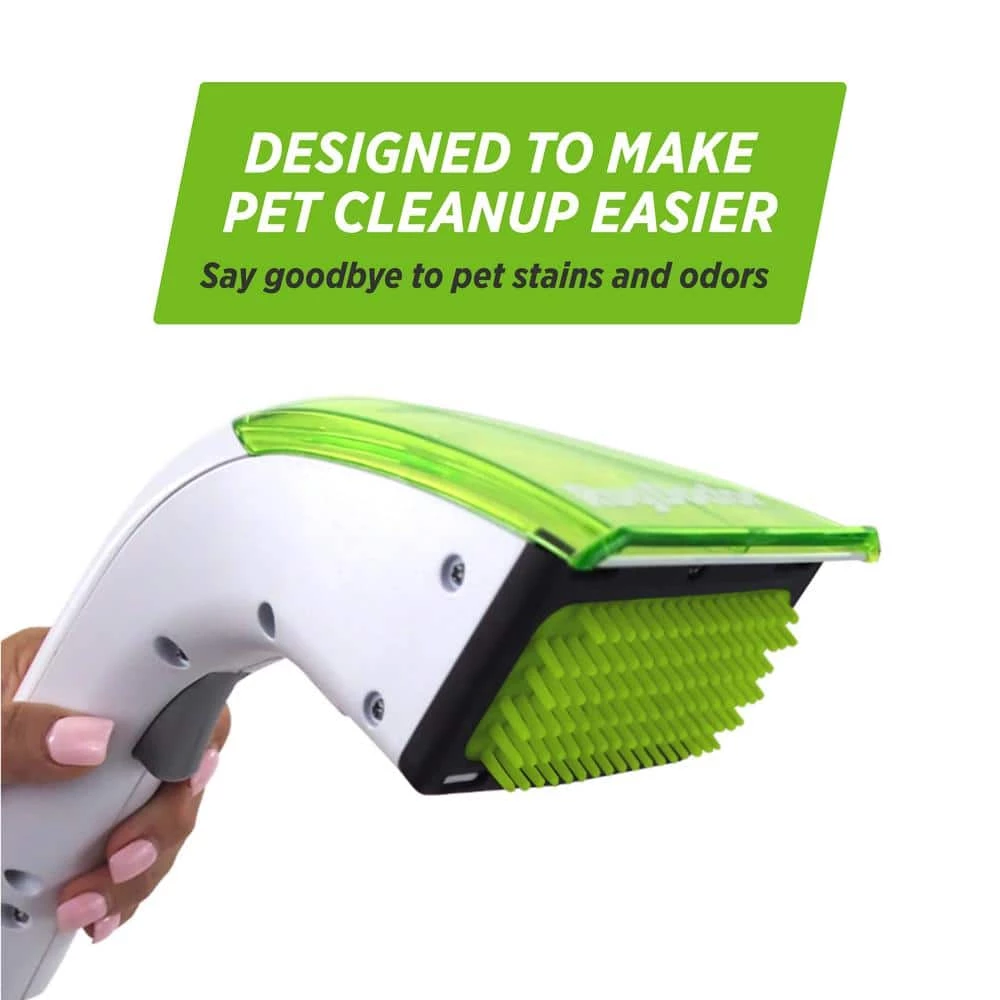 - Dual Action Pet Tool with rubberized bristles removes loose pet hair and extracts dirt, stains, odors, and more – just spray, scrub and extract
