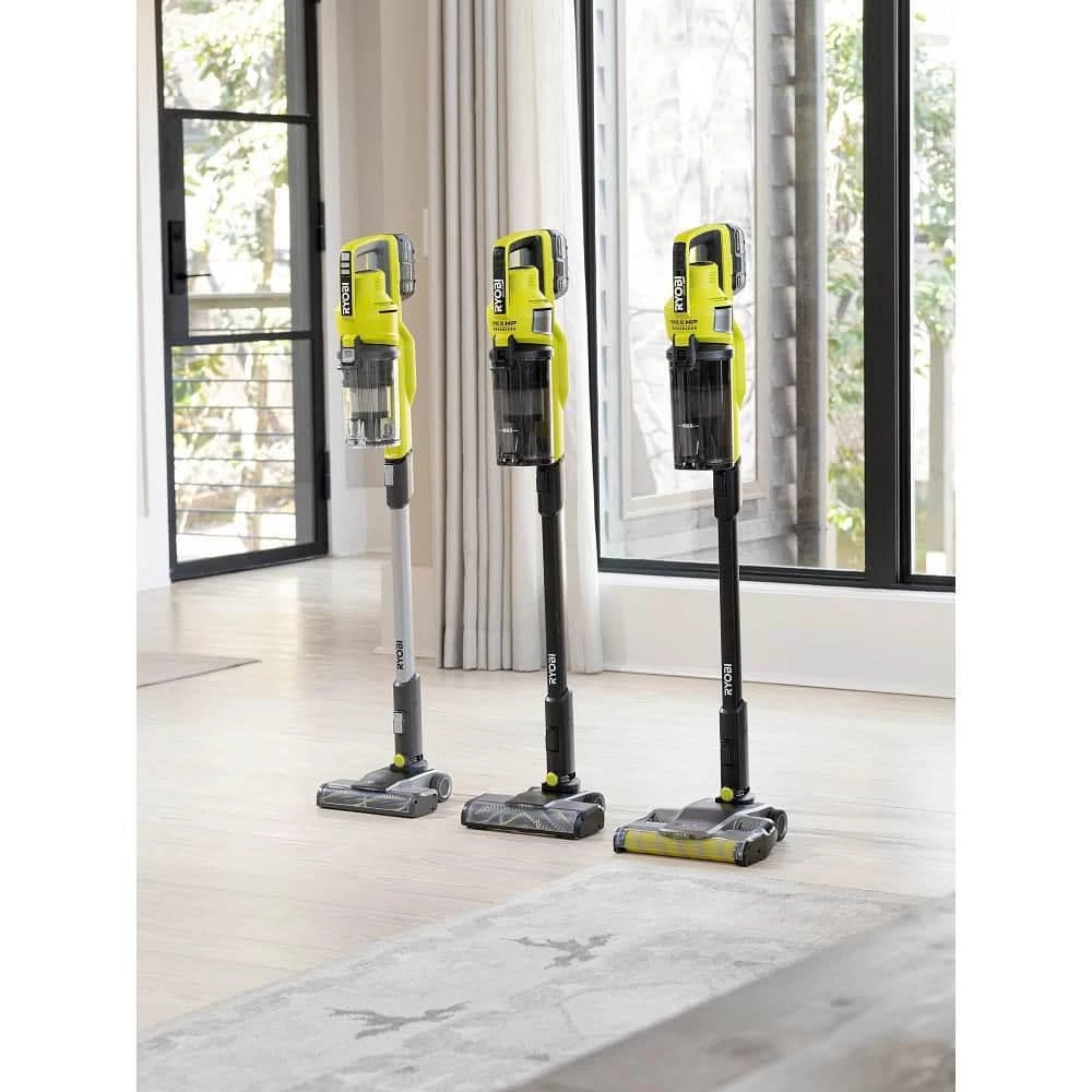 RYOBI introduces the 18V ONE+ Cordless Stick Vacuum Cleaner to our cleaning category, providing cordless convenience for floor-to-ceiling cleaning. This improved stick vac not only delivers 20% more suction power but is also 30% lighter and 50% quieter. The included 4Ah Lithium-Ion battery provides 45 of minutes of runtime per charge. The cyclonic filter traps up to 99.9% of dust and allergen matter. LED lights on the roller bar illuminate dust, dirt, and hair. The easy to empty dust cup and removable roller bar allows you to quickly clean and maintain your vacuum. By removing the extension wand, you now have a hand vac for cleaning messes in your car, on your stairs, on delicate surfaces, and in tight spaces with the included crevice tool and dust brush. This vac stands on its own and includes a wall mount to conveniently store your unit after use. Best of all, it is part of the RYOBI ONE+ System of over 260 Cordless Tools that all work on the same battery platform. Backed by the RYOBI 3-Year Manufacturer’s Warranty, the 18V ONE+ Cordless Stick Vacuum Cleaner includes Crevice Tool, Dust Brush, Wall Mount, 18V 4.0 Ah Lithium-ion Battery, Charger, and Operator’s Manuals.