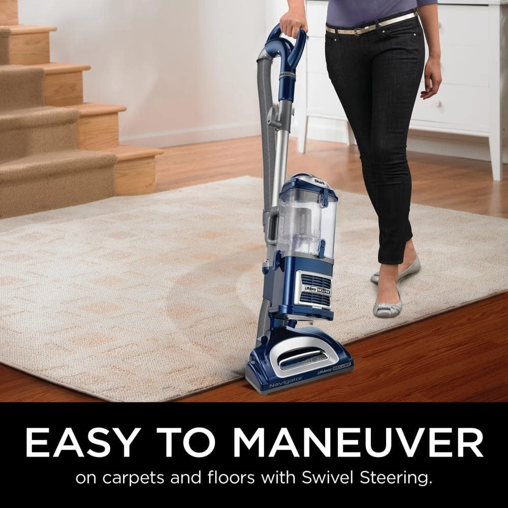 A lightweight and steerable Never Loses Suction upright with a unique detachable canister for powerful and portable cleaning anywhere, anytime. The Lift-Away features Anti-Allergen Complete Seal Technology + HEPA that traps over 99.9% of dust and allergens inside the vacuum plus a large capacity, bottom-empty bag less dust cup. Swivel steering provides complete control to easily maneuver under and around obstacles and furniture. The deluxe motorized brush roll can be turned on or off, providing superior performance on both carpets and bare floors. Features premium pet tools, including a pet power brush, dusting brush, crevice tool and a specialized appliance wand for fast and efficient cleaning under low furniture. A generous 25 ft. long power cord makes easy work of cleaning large areas.