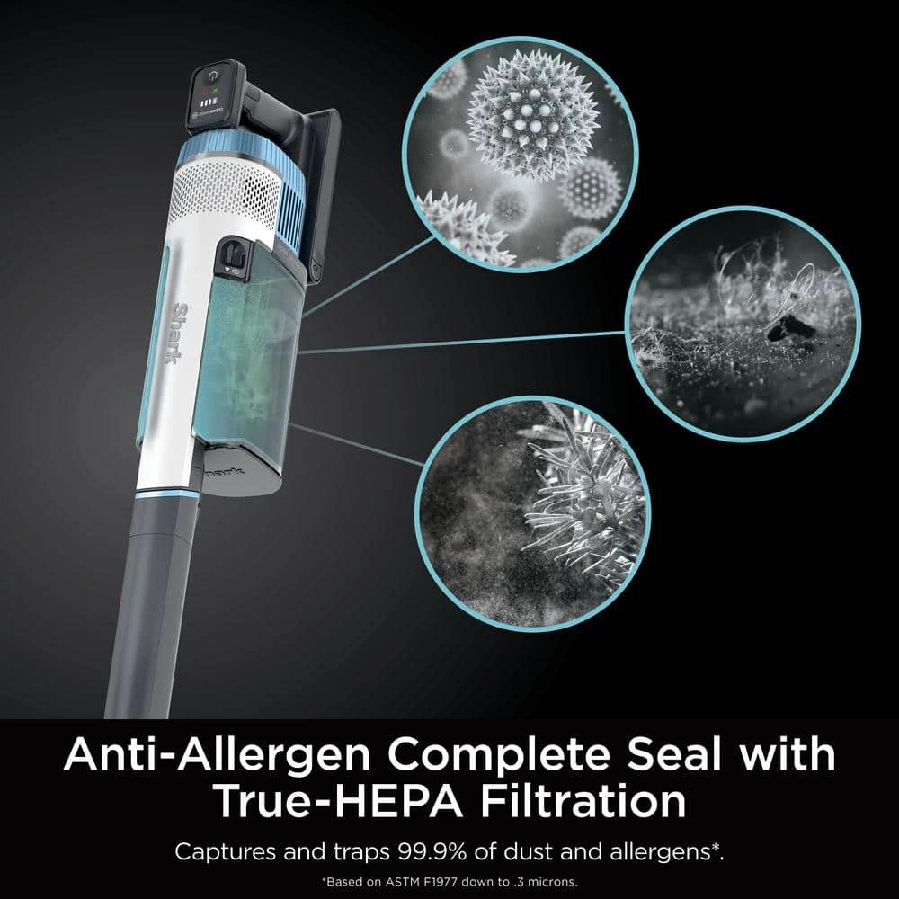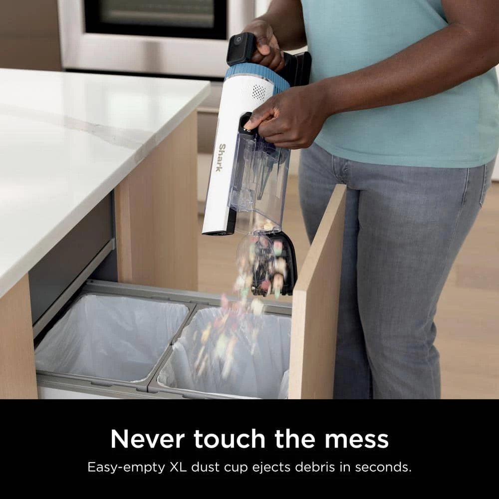- Clean Sense IQ: an infrared sensor detects the dirt you can’t see and automatically increases power, giving you up to 50% better dirt pickup (versus Shark cordless Stratos in ECO mode), the Clean Sense IQ indicator visually shows when floors are clean
