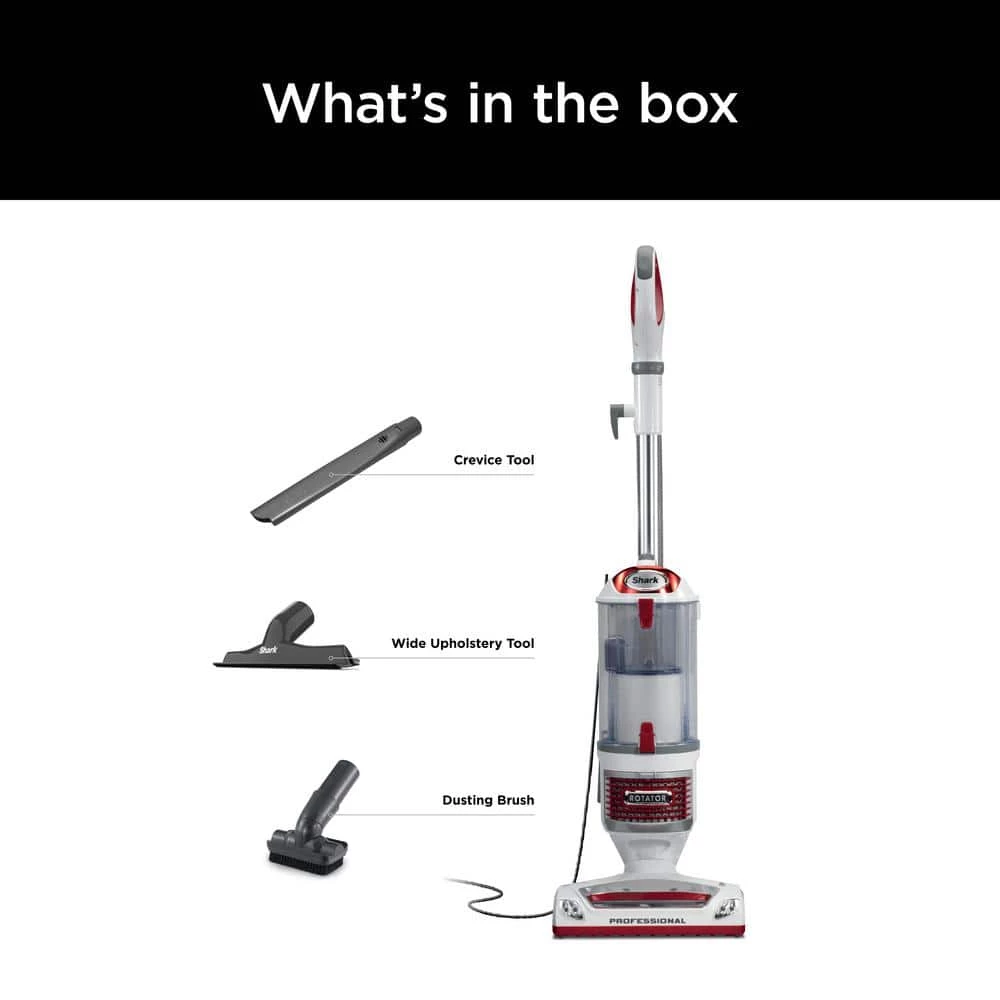 The Shark Rotator Professional Lift-Away features two vacuums in one. This powerful upright is also a portable Lift-Away that makes vacuuming quick and easy on both carpets and bare floors. You’ll find this vacuum completely versatile. It’s armed with swivel steering to maneuver around furniture, features a power nozzle with LED headlights, and includes a brush roll on/off to provide superior performance. The Rotator also features Anti-Allergen Complete Seal Technology + HEPA filtration to trap 99.9%* of dust and allergens inside the vacuum. Combined with two foam filters, this dust containment system helps keep allergy-causing agents from releasing back into the air. Additional accessories include a pet power brush, crevice tool, straight suction nozzle and a wide pet upholstery tool. An extra-long 30 foot long power cord allows you to clean larges spaces easily. It is even exceptionally quiet, so you won’t disrupt your household either! Based on ASTM F1977 of particles between 0.3 and 0.5 microns.