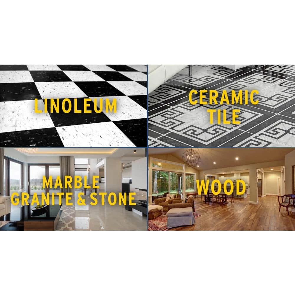 - Works great on most floor surfaces eliminating the need for specialty floor cleaners