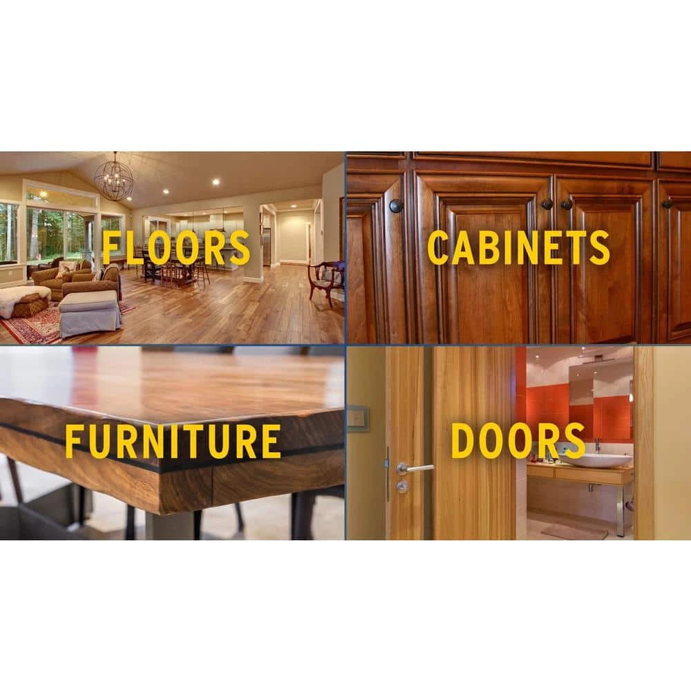 - Safe for use on varnish, acrylic & polyurethane-finished wood & laminate floors, baseboards, cabinet doors & crown molding